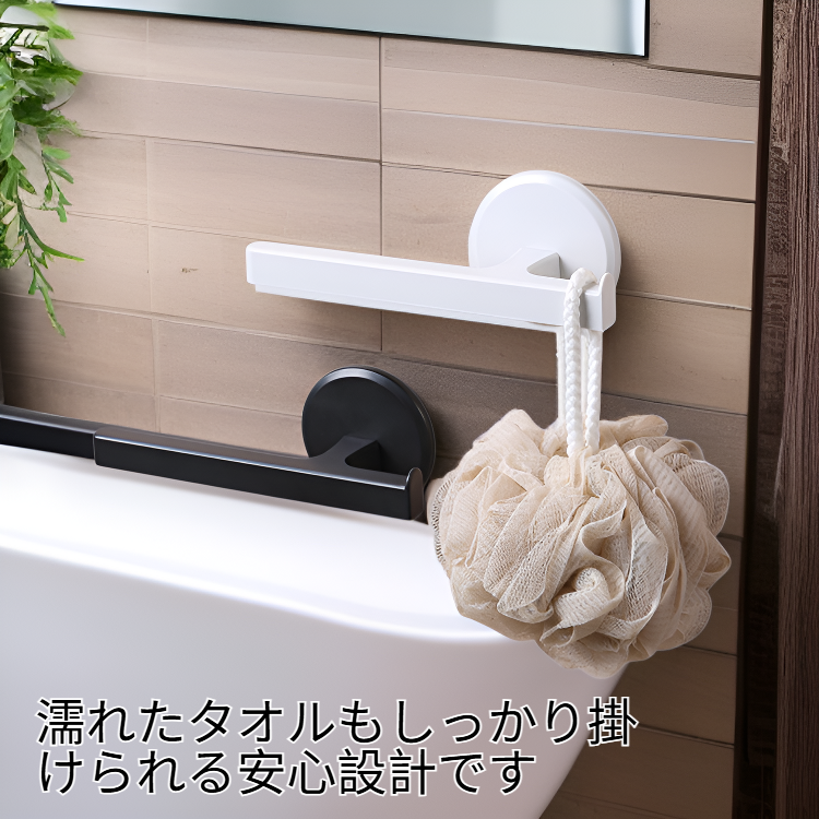 ● 耐久性の高い素材を使用し、濡れたタオルもしっかり掛けられる安心設計です。