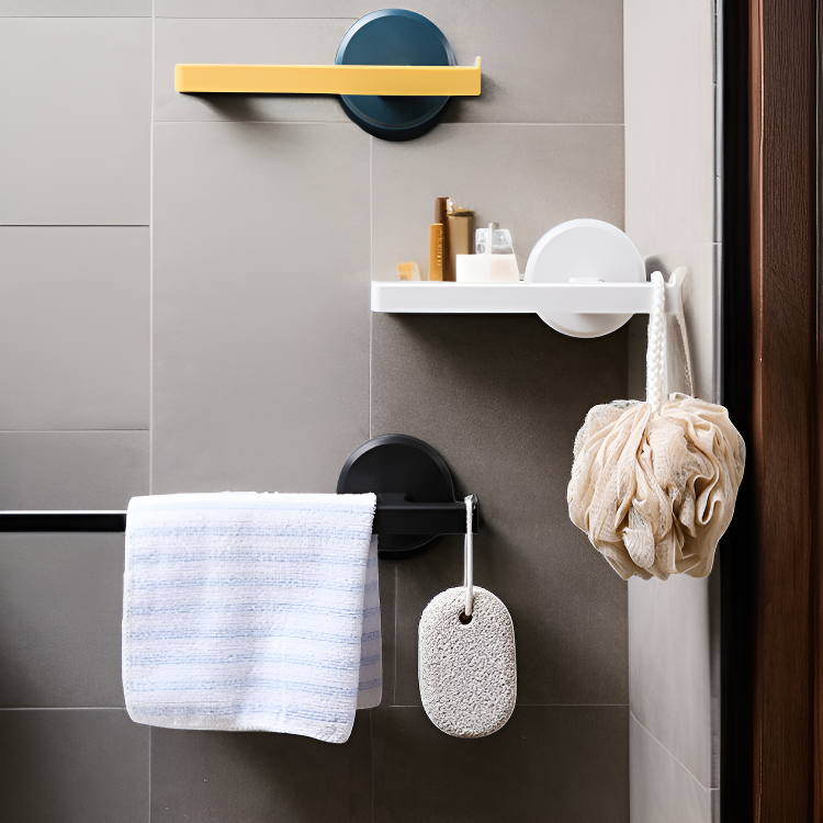 ● 穴あけ不要で壁を傷つけず、賃貸住宅や新築住宅でも安心して使用できるタオルラックです。
