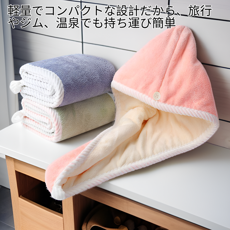 ● 超吸水マイクロファイバー素材を採用し、濡れた髪を素早くしっかり乾かせるので、ドライヤー時間を大幅短縮!